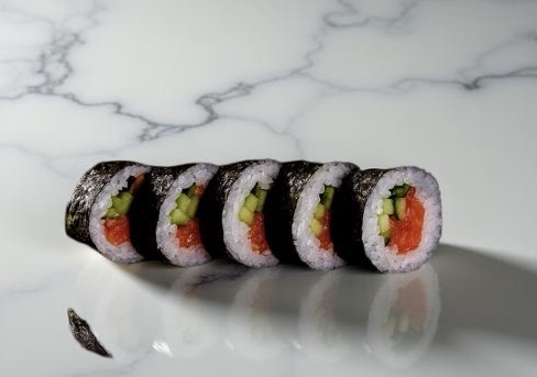 Кунсей хот Смажений рол, в хрусткій паніровці, з крем сиром, лососем копченим, та огірком